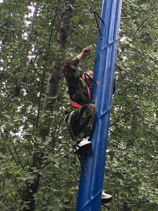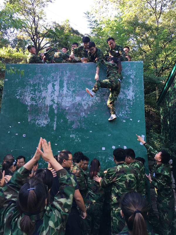 面對***后的逃生墻時,大家甘當人梯的精神,深深的感動了我,大家干勁十足,在吶喊的加油聲中,男生們努力的抓住每一雙手,我們踩在他們的背上,膝蓋上不斷的攀爬,那一刻他們用自己的臂膀支撐著我們完成***后的挑戰(zhàn)!